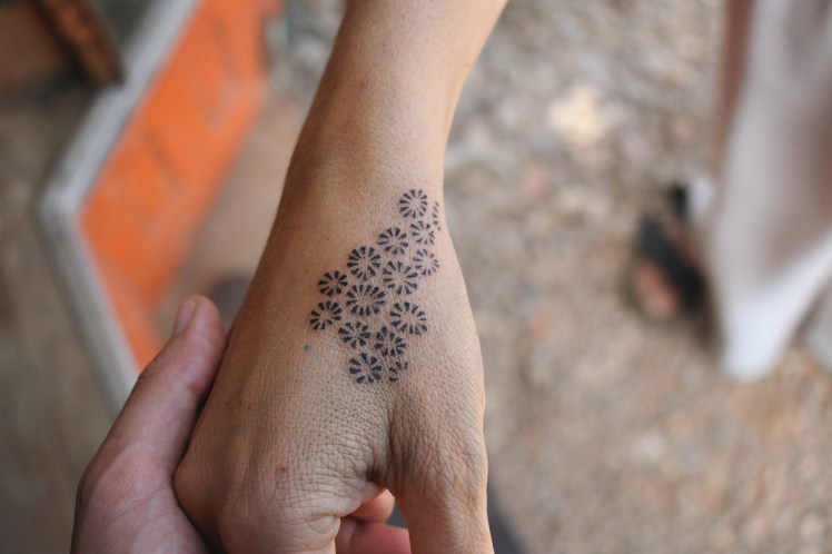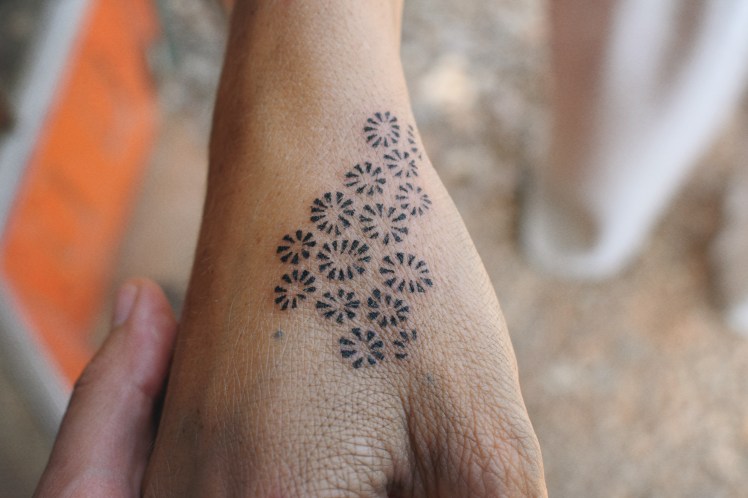 Tatouage à l’aiguille, Handpoked tattoo pour Martha – Chrysanthemum
