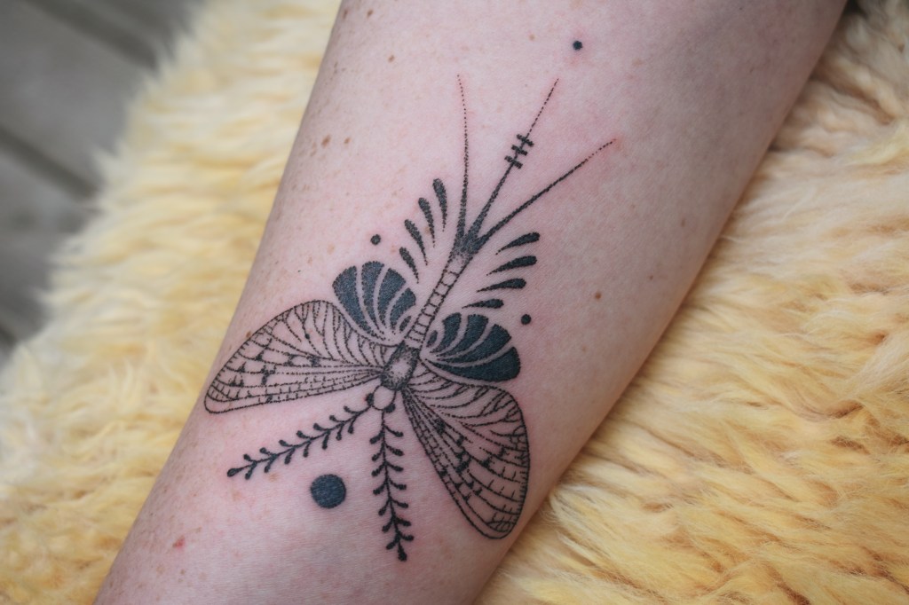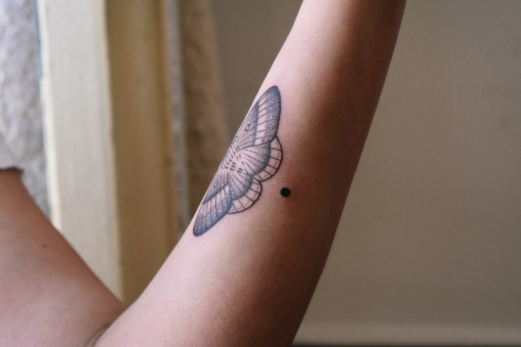 Bombyx du Chêne – Tatouage à l’aiguille, Handpoked tattoo pour Perine