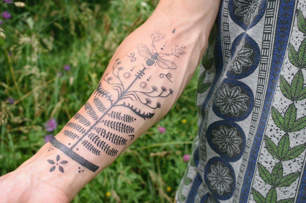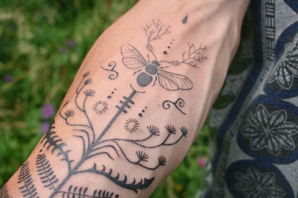 Pissenlit, Gentiane printanière, Albizia, & Abeille Charpentière, Tatouage à l’aiguille, Handpoked tattoo pour Corentin « Ephemeroptera »Tatouage à l’aiguille / Handpoked tattoo pour Céline« Primula vulgaris »Tatouage à l’aiguille / Handpoked tattoo pour Marcia« Nepenthes »Tatouage à l’aiguille / Handpoked tattoo pour Manu