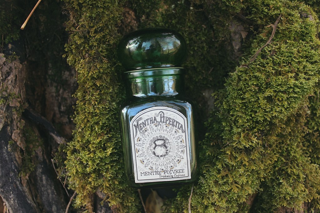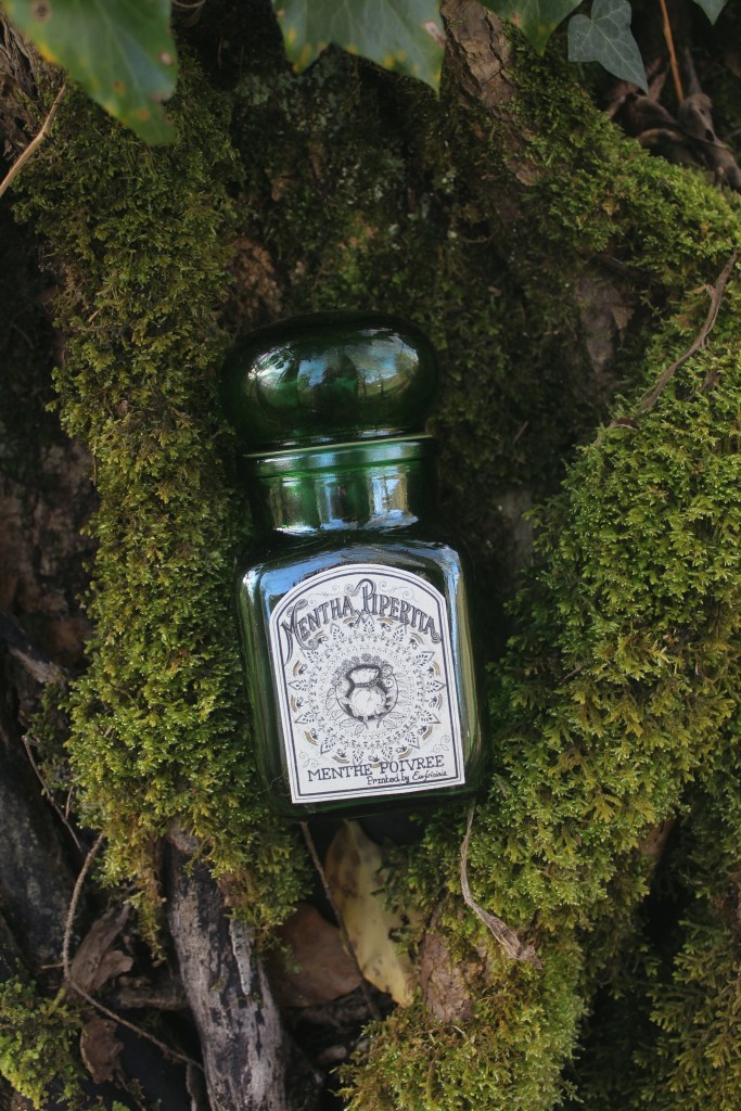 Voici Menthe Poivrée, notre avant dernière étiquette de l’enveloppe « Incantations Végétales » que je vous présente ce mercredi à 20:30. Le flacon d’Apothicaire sera aussi proposé 😉