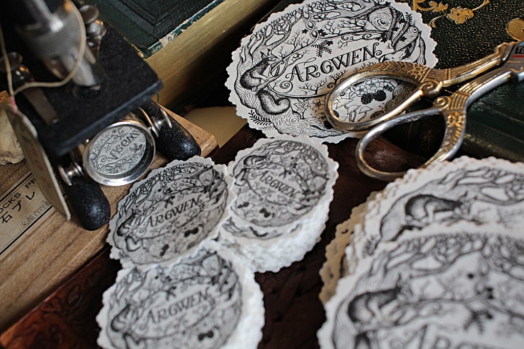 Elle m’a parlé de l’écureuil, du Roitelet dans son jardin, des hérissons, des mûres et des branches qu’elle apprécie voir dans les illustrations, ainsi que des fougères et du bourdon. Un petit tour sur son compte instagram, et je suis inspirée pour cette création que j’ai voulu tentaculaire comme la végétation foisonnante, les extrémités tâtant l’espace, se prolongeant sans fin, recouvrant les surfaces… C’est une illustration qui me fait penser à une couverture d’un livre pour enfants, à un livre de contes de fées.. ce grand livre bien épais, « Il était une fois, Arowen…