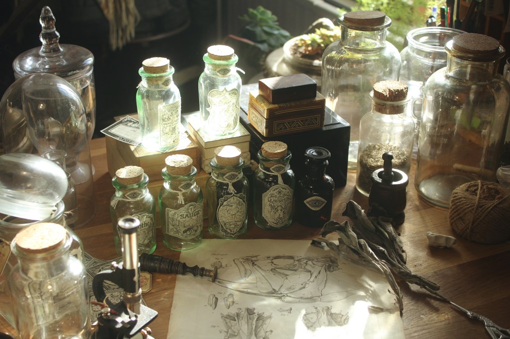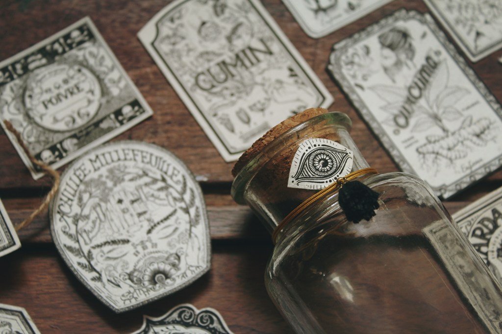 Et maintenant, une collection de petits flacons portant quelques unes des étiquettes « Incantations Végétales ».