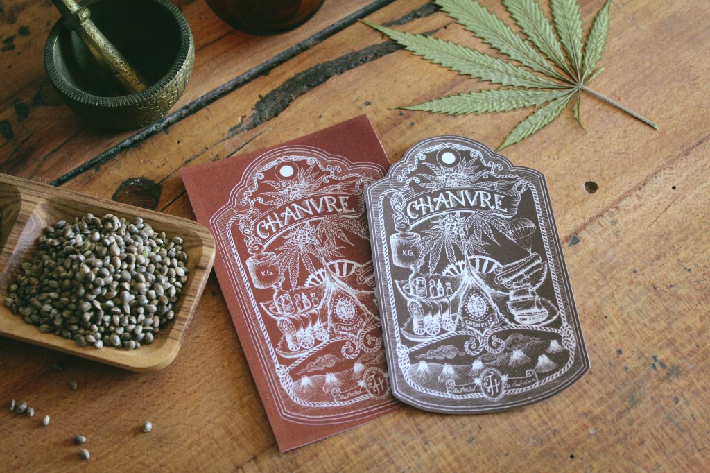 Je vous présente aujourd’hui la dernière création de cette semaine avec l’étiquette pour le Chanvre, qui est un si vaste sujet que je n’arriverai pas à être concise. J’ai alors décidé de ne pas vous dévoiler les secrets de cette illustration mais de vous partager deux vidéos en fin d’article, dont je me suis fortement inspirées pour la réalisation de cette étiquette.