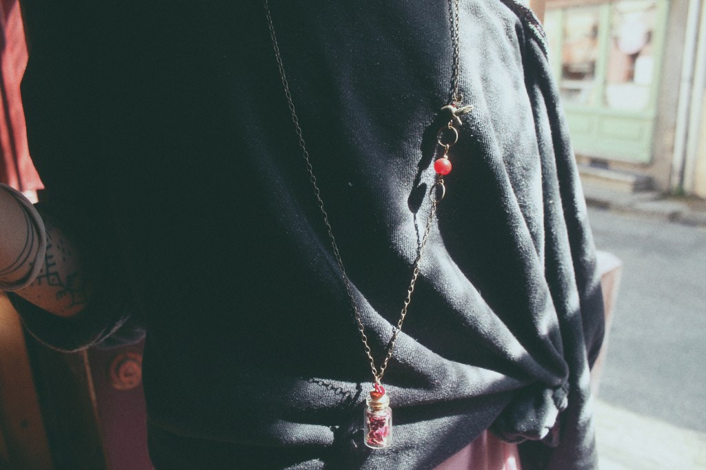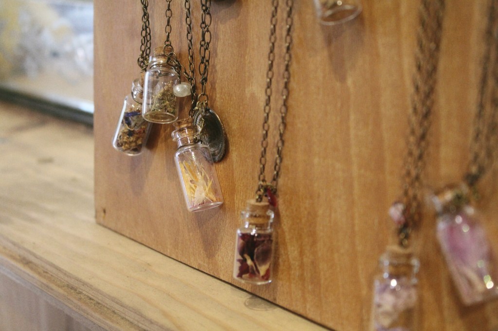 Sonia travaille avec les énergies vibratoires des plantes qu’elle récolte et les propose comme fioles médecine à porter sur soi. Accompagnées de perles, grenouilles, parchemins d’écorce de bouleau et autres petits colibris, Sonia m’a demandé de créer leurs étiquettes, mais cette fois-ci, elles devront être recto-verso ! Papier épais teinté avec de la marc de café et découpage à la main, les voici prêtes à être remplies de toutes les belles énergies des plantes.