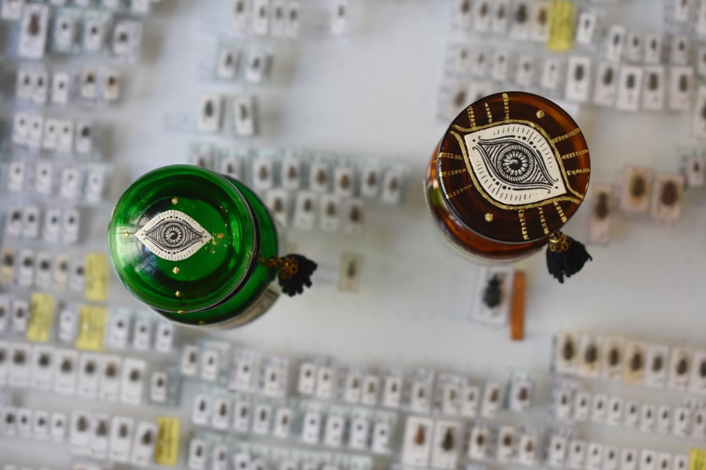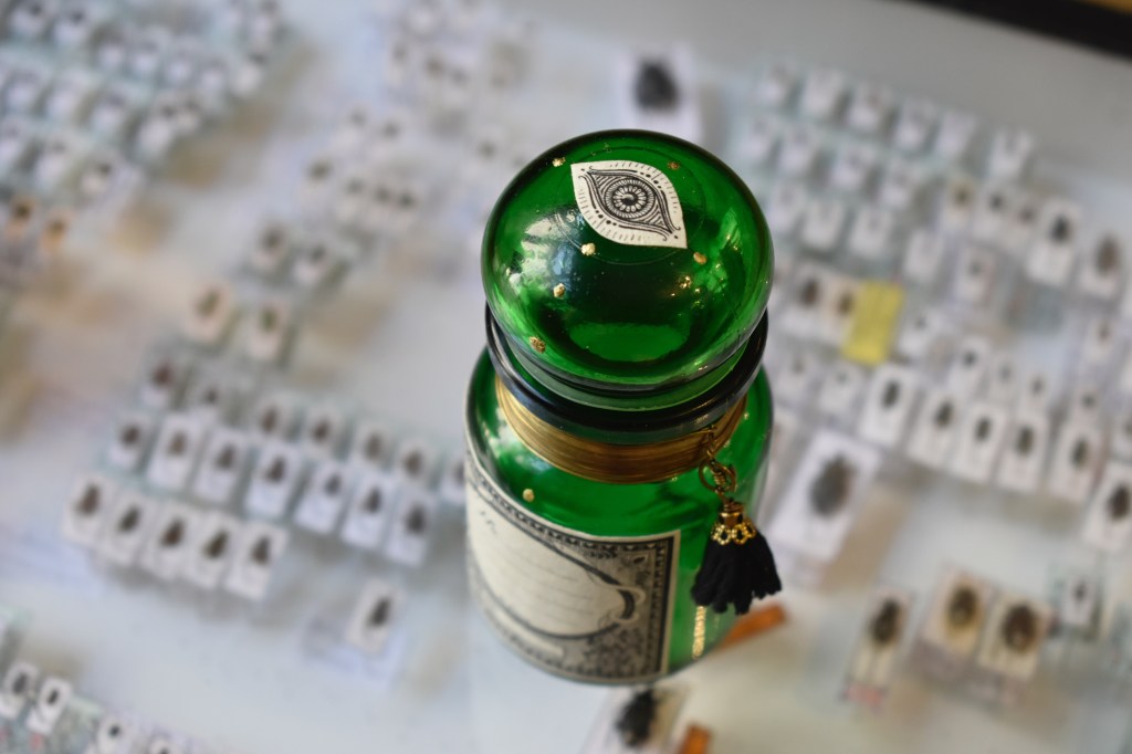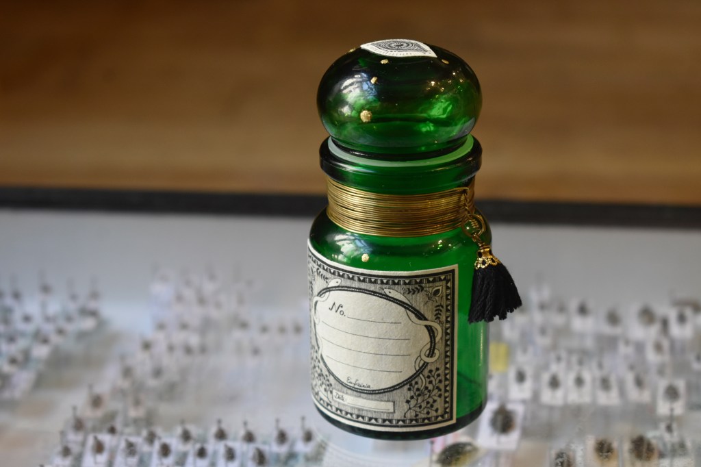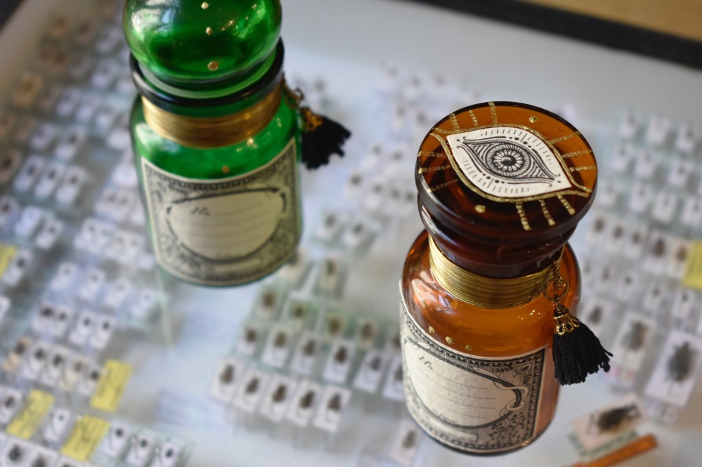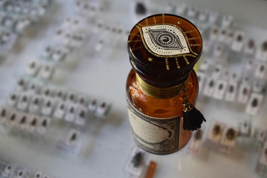 A l’atelier boutique @artemisia.shop, entourée d’innombrable flacons 🤭, je les décore à la main et leur ajoute un joli col en laiton.