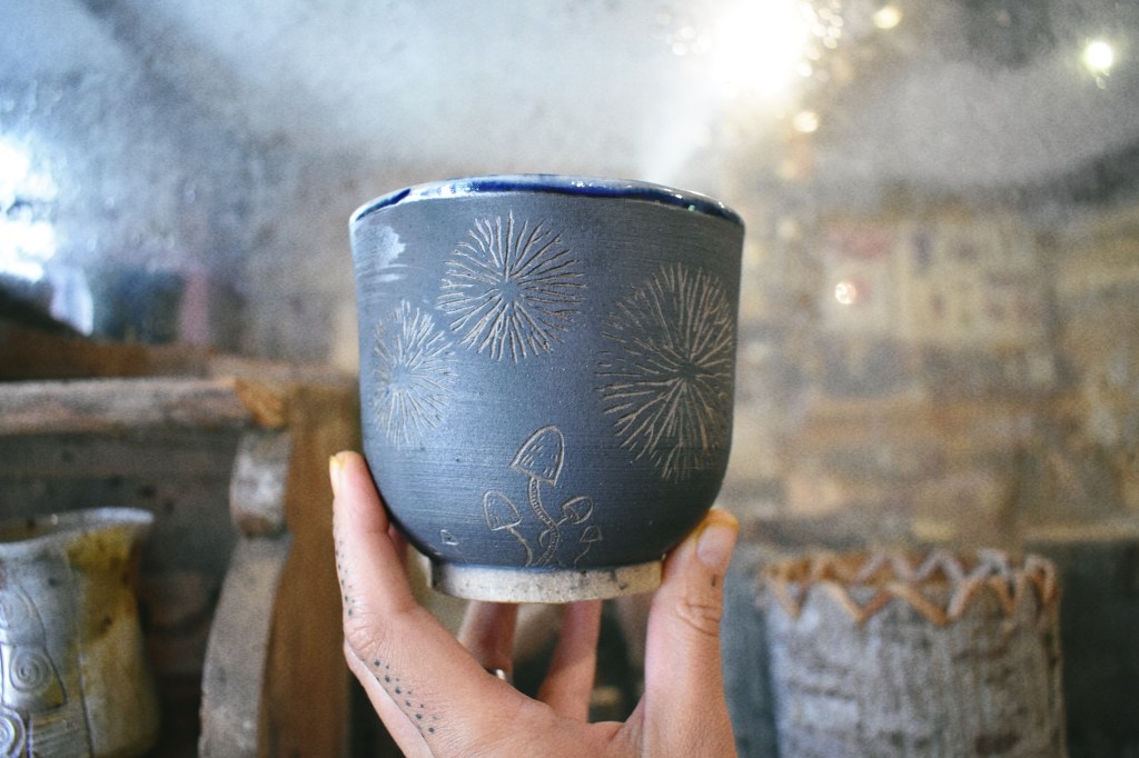 L’été dernier je mettais déjà rendue chez David pour une première expérience de gravure sur poterie : ICI