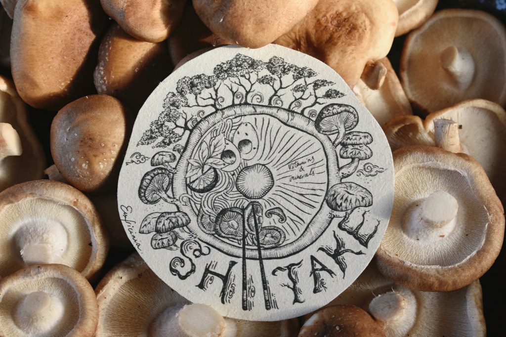 Le shiitake, champignon excellent pour la santé et au nom japonais, sera ma dernière étiquette pour cette nouvelle enveloppe « wabi-sabi » que je mets en ligne dans ma boutique dès demain :))