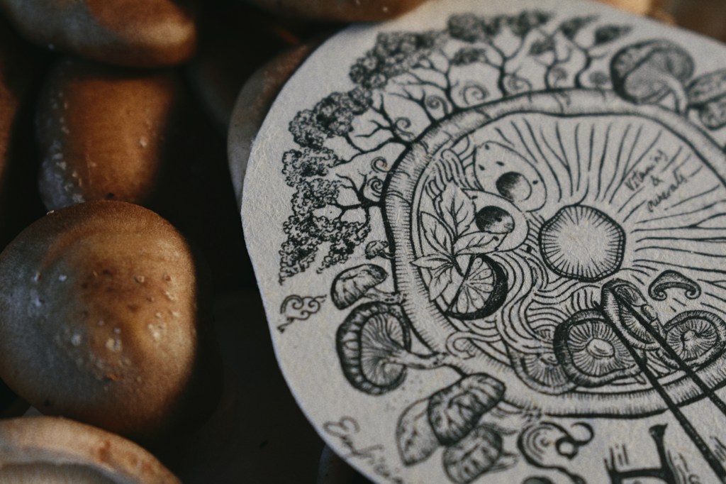 Shiitake, super healthy mushroom, with a Japanese name, will be my last label for this new envelope « wabi-sabi » that I put online in my boutique tomorrow :))