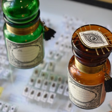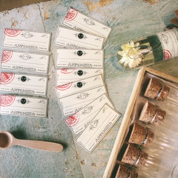 Et maintenant, une collection de petits flacons portant quelques unes des étiquettes « Incantations Végétales ».J’ai choisi, Absinthe, Sureau Noir, Sauge, Camomille Matricaire, Lavande, Laurier,arborant en leurs cols, un oeil protecteur 👁 et un fil de coton blanc tressé. Ci- dessous un flacon à personnaliser avec l’étiquette de votre choix. J’ai sélectionné celles qui sont le plus … Lire la suite Collection « Eye »